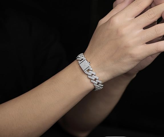 Elevate your style with this sophisticated iced out curb chain bracelet in a polished silver tone. Featuring meticulously set sparkling cubic zirconia stones, it delivers a radiant brilliance that catches the light beautifully. Crafted from premium stainless steel, this bracelet offers durability and a lasting shine, making it an ideal statement piece for both everyday wear and special occasions. Its bold yet refined design adds a luxurious touch that enhances any outfit effortlessly, allowing you to express confidence and elegance with every wear.